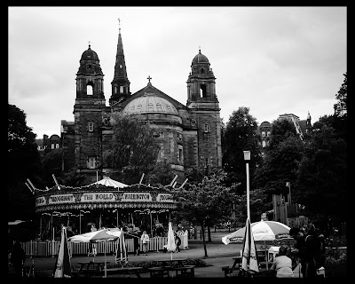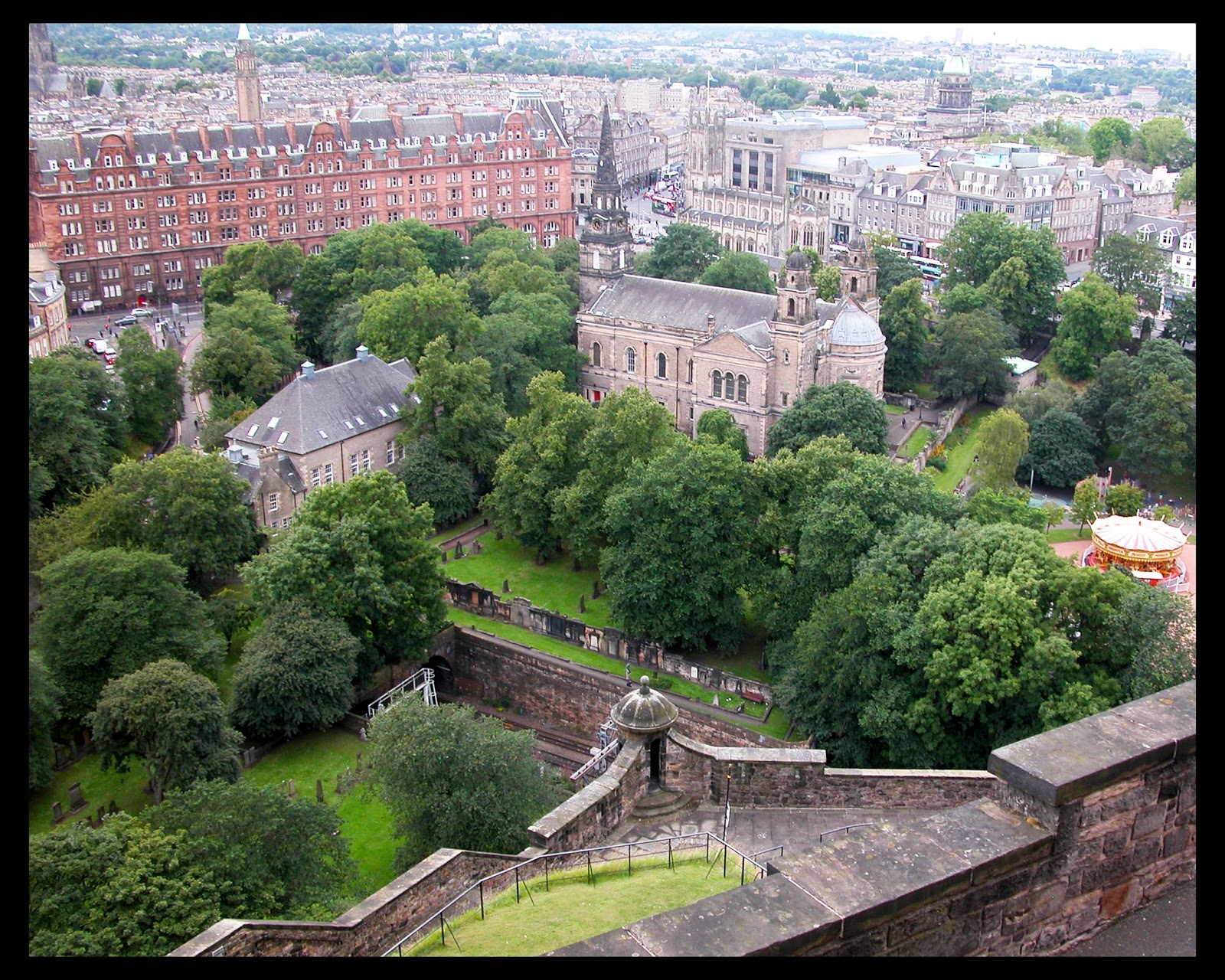 The plane ride was long but relatively uneventful. The weather was pretty clear as we crossed the lowlands, banked around the Firth of Forth, and touched down. After going through customs, we caught the tram into the city center and got off at Princess street and looked up at Edinburgh Castle..
